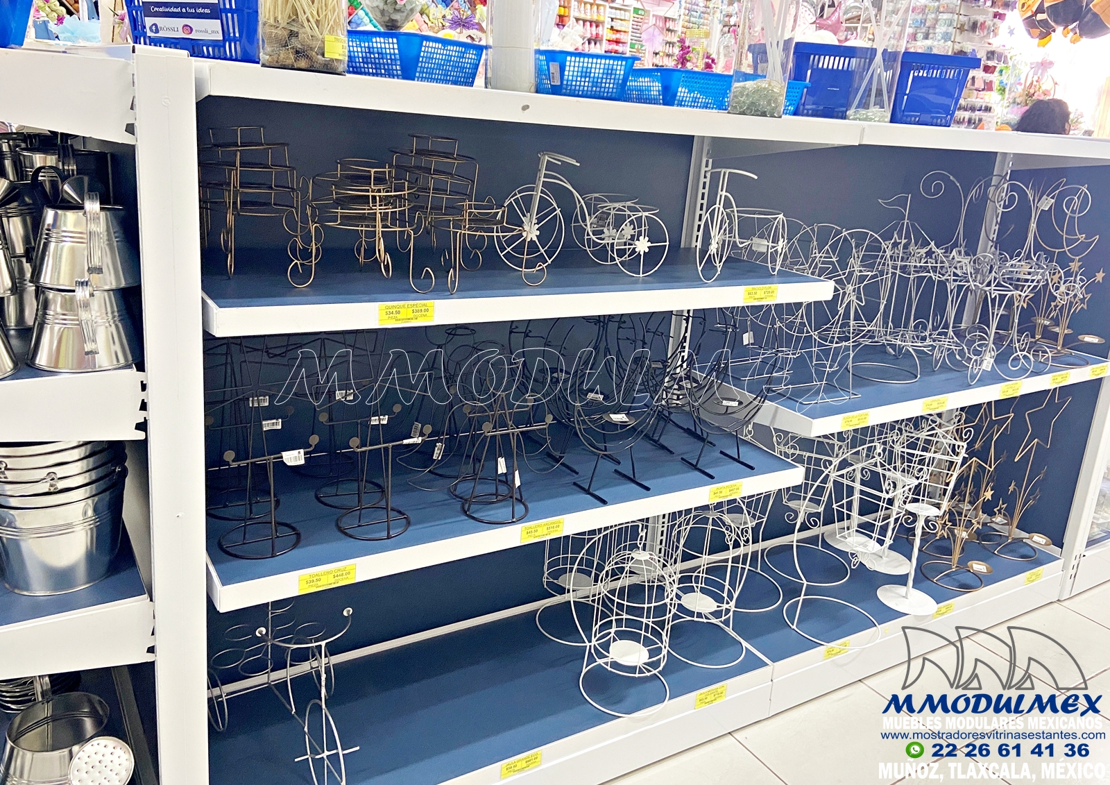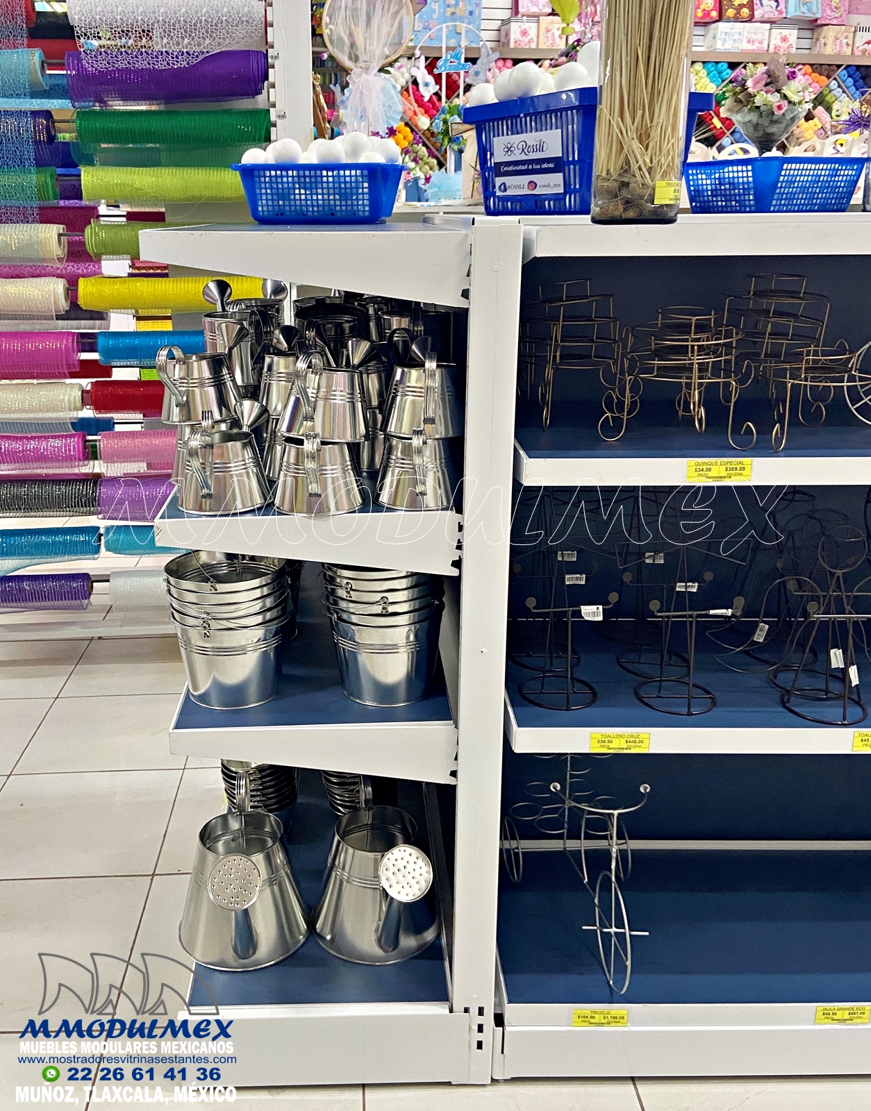 Las góndolas metálicas, centrales y de pared, son el principal elemento de almacenaje y exhibición de los productos para su negocio. Para exhibir la gran cantidad y diversidad de productos o marcas que existen en el mercado se requiere contar con góndolas adecuadas, resistentes y estéticas que no descuiden la presentación del negocio. Contamos con góndolas metálicas de muy diversos tamaños y con características especiales para poder exhibir cada uno de sus productos de tiendas o de herramientas y accesorios en caso de ferreterías, solo por mencionar dos giros de negocio. Tenemos distintos tipos de barras y accesorios para colocar y exhibir desde las herramientas más pequeñas o productos como tornillería y refacciones diminutas, hasta herramientas pesadas o maquinaria especializada que se venden en este tipo de negocios.