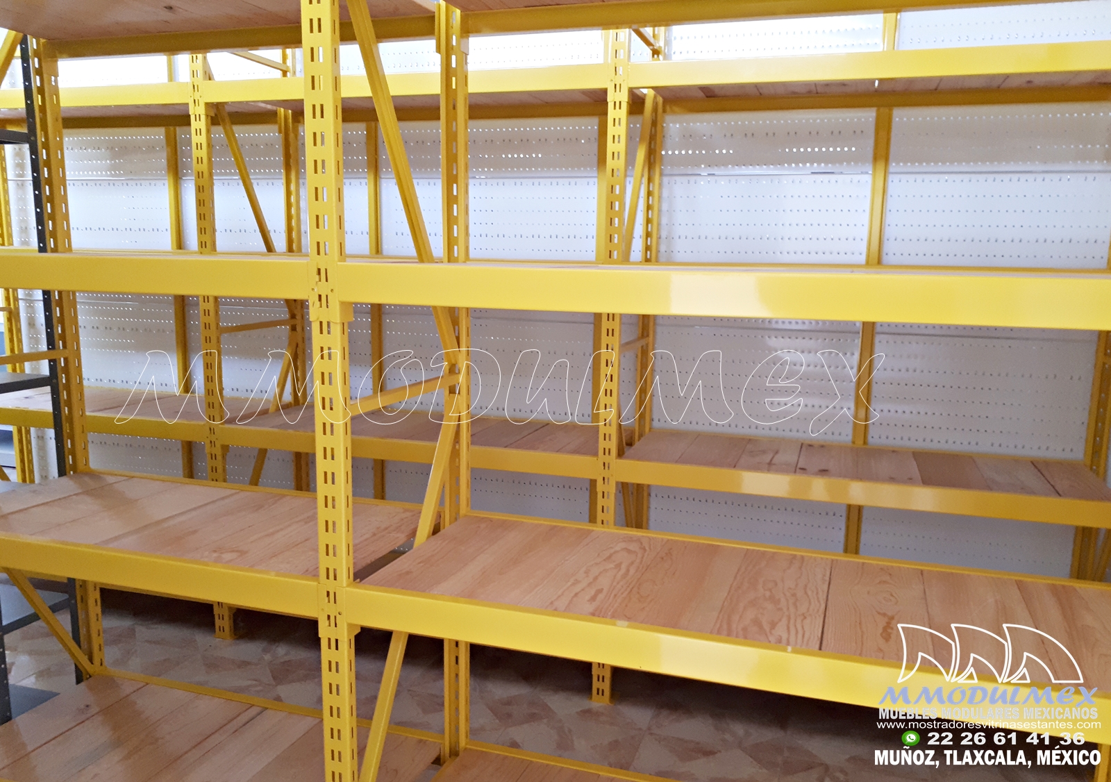 - La línea MAX, que se adapta a pequeños y grandes negocios por la variedad de medidas que fabricamos; tienen una capacidad de carga por nivel o entrepaño de 85 kg. su estructura principal fabricada con postes de acero cal. 14, protegidos con pintura electrostática horneada y los entrepaños también con ménsulas cal. 12 y plataforma cal.20.