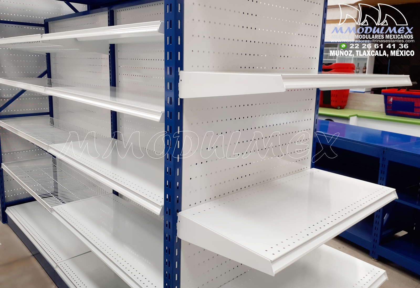 Las góndolas metálicas, centrales y de pared, son el principal elemento de almacenaje y exhibición de los productos para su negocio. Para exhibir la gran cantidad y diversidad de productos o marcas que existen en el mercado se requiere contar con góndolas adecuadas, resistentes y estéticas que no descuiden la presentación del negocio. Contamos con góndolas metálicas de muy diversos tamaños y con características especiales para poder exhibir cada uno de sus productos de tiendas o de herramientas y accesorios en caso de ferreterías, solo por mencionar dos giros de negocio. Tenemos distintos tipos de barras y accesorios para colocar y exhibir desde las herramientas más pequeñas o productos como tornillería y refacciones diminutas, hasta herramientas pesadas o maquinaria especializada que se venden en este tipo de negocios.